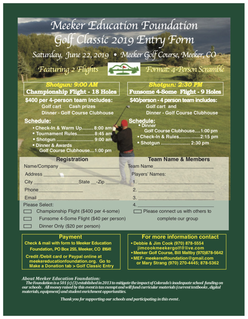 ‘Pay your Entry for the Meeker education Golf Classic’